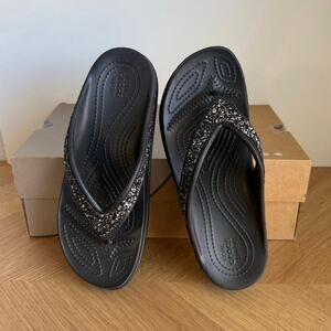 Crocs Sequin Women Black Platform Sandals - SZ 7