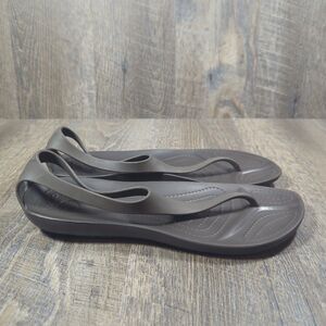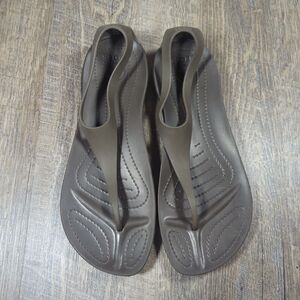 Crocs Sexi Flip Sandals Women's 9 Dark Espresso Brown T Strap Thong Flat Shoes Comfort Slip On