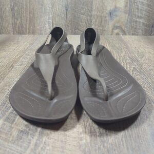 Crocs Sexi Flip Sandals Women's 9 Brown T Strap Thong Flat Shoes Comfort Slip On