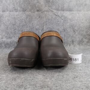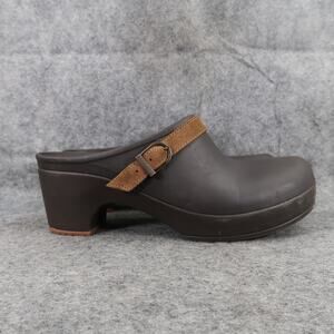 Used Crocs Shoe Women 9 Clog Slip On Comfort Fashion Rubber Leather Strap Brown Sarah