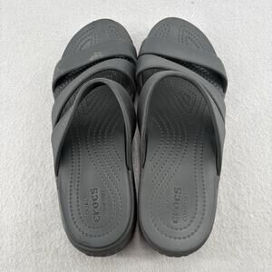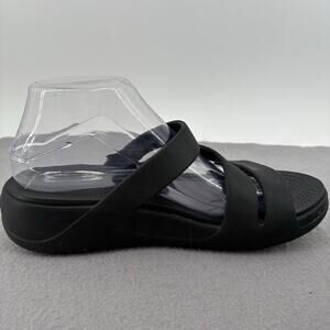 Crocs Shoe Womens 10 Black Monterey Strappy Wedge Casual Comfort Slip On Sandal