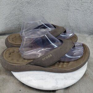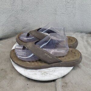 Crocs Shoes Mens Size 12 Brown Synthetic Reviva Flip Flop Thong Sandals *Read*
