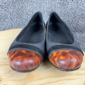 Crocs Shoes Tortoise Shell Flats Womens Size 8 Slip On Cap Toe Casual Loafer