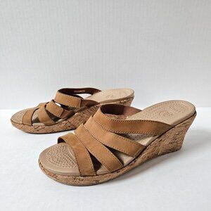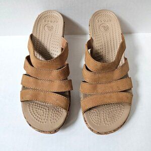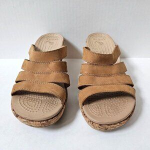 Crocs Shoes Womens 10 A-Leigh Strappy Nubuck Leather Cork Wedge Sandals