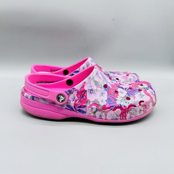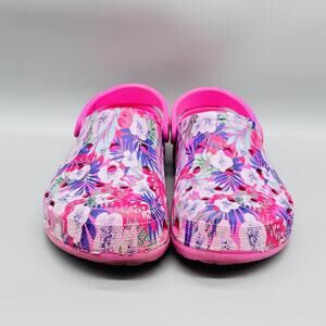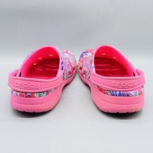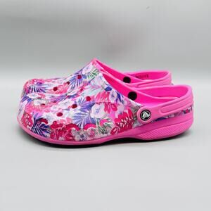 Crocs Shoes Womens 11 Pink Floral Classic Clog Mules Slip On Comfort Sandals