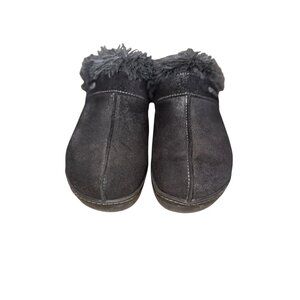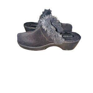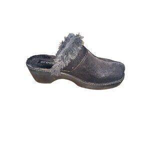 Crocs Shoes Womens 7 Cobbler Mule Clogs Black Suede Faux Fur Trim Wedge 11602