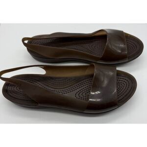 Crocs Shoes Women's Size 7 Brown Peep toe Colorblock Flats Translucent Sandals