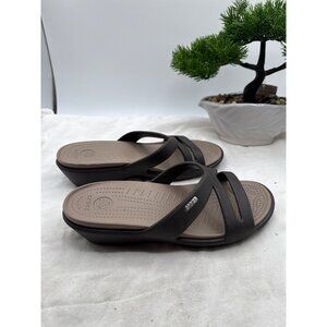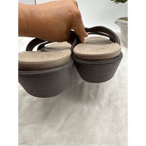 Crocs Size 10 Womens Brown & Beige Slip-On Wedge Sandals Criss-Cross Straps