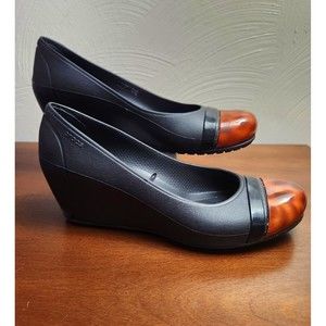Crocs Size 8 Women’s High Wedge Leopard Cap Toe Business Casual Work Shoes 15508
