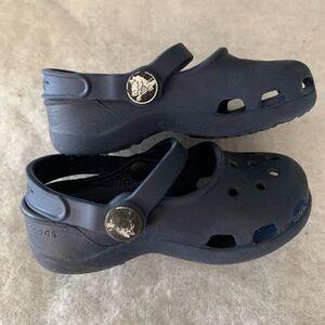 Crocs Size Infant 6-7 Blue Mary Jane Slingback Blue Casual Sandals Clogs. Excellent condition, outside decal on both clogs scraped off.
