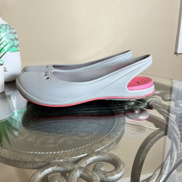 Crocs Skylar Tone Slingback Flat Slip On Shoes Women's Size 7 Gray Pink EUC!