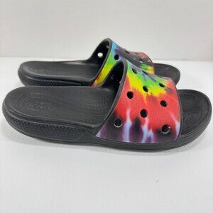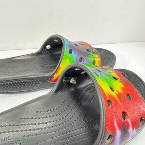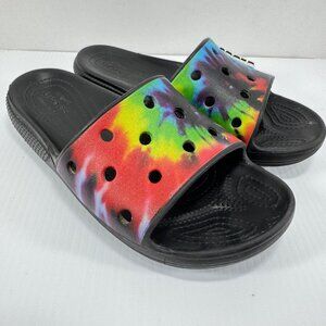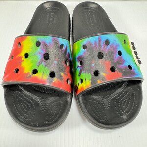 Crocs Slide Sandals Shoes Tie Dye Unisex Mens 7 Womens 9 Black Rainbow