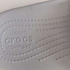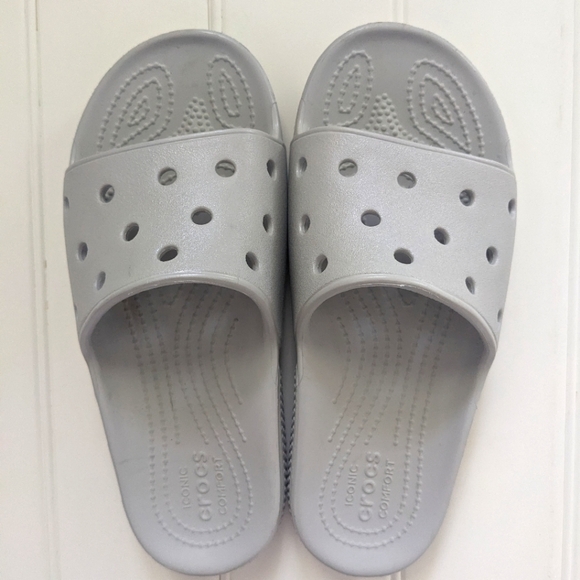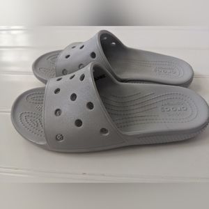 Crocs Women's light gray Slides. Size US 7. Light wear. In VGUC.