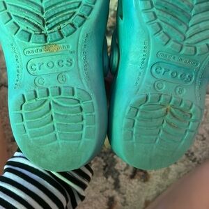Aqua blue Crocs brand Mary Jane sandals. GUC. Child’s size 8.