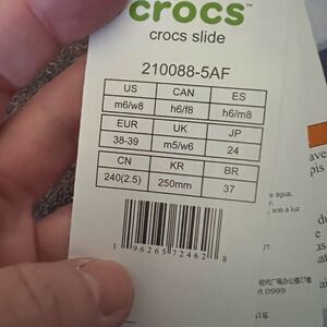 This simple, easy to wear slide offers essential Crocs comfort and style at an amazing price. A sleek upper features the Crocs logo, and a fully molded Croslite™ design makes it lightweight and comfortable. An everyday slide sandal that’s so perfect, you’ll want multiple pairs!