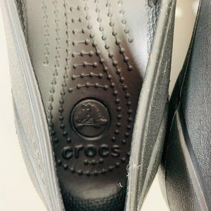 Crocs Slip On Ballet Flats Shoes Size 8 Matte Black Mirror Cap Toe Comfort