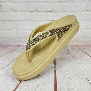 Crocs Sloane Glitter Chai/Gold Wedge Thong Flip Flop Sandals Women’s Size 9 (207665-2J2)