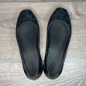 Crocs Sloane Graphic Leopard Iconic Comfort Womens Sz 5 Black Gray Slip On Sandal flats in excellent condition. Beautiful leopard print sandals with crocs iconic comfort. Get these today ladies.