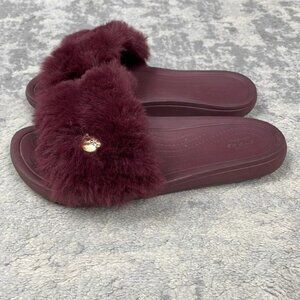 Crocs Sloane Luxe Slide Sandal Flip Flop Burgundy Maroon Faux Fur Sz 7