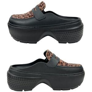 Crocs Stomp Leopard Loafer Platform Shoes W8/M6 Comfort Slip On Black Brown