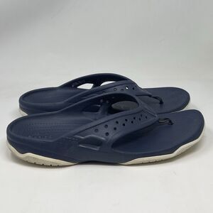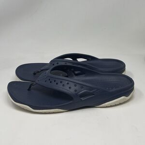 Crocs Swiftwater Deck Thong Sandals Mens 11 Blue Slip On Flip Flops Comfort