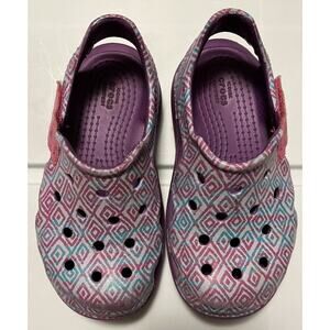 Crocs Swiftwater Wave 204990 Adjustable Sandals Purple Geometric Print Sz C9