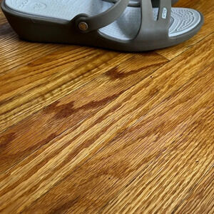 Crocs Swiftwater sandal, size 10W. Beige and white, in excellent used condition.