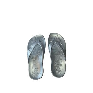 Slip into comfort with the Crocs Thong Sandals for women, size 4. These black rubber sandals feature a massaging sole for maximum comfort, perfect for a casual summer day.