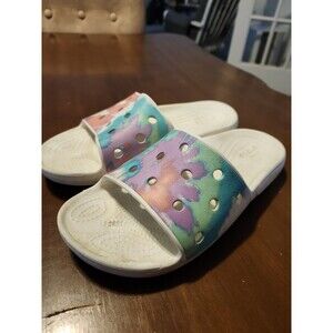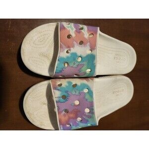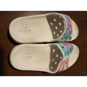Crocs Tie Dye Graphic Classic Slip On Shoes Women's Size 7 White Colorful Slide
