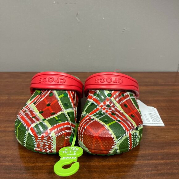 Crocs Toddler Baya Holiday Christmas Plaid Clogs Kelly Green - SIZE C9