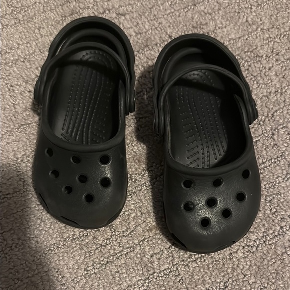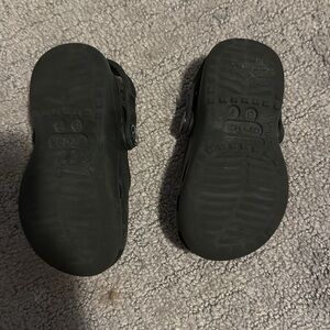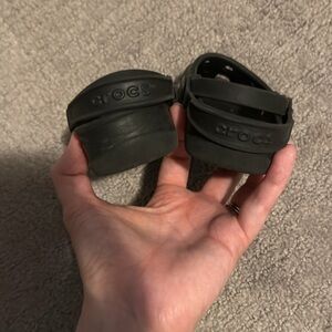 These are black double strap Mary Jane style Crocs in a size 6 or 7, depending on where you wear the strap. Fair used condition as some of the “crocs” logo on the side as started to wear, otherwise the shoe itself is intact.