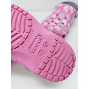 Crocs doesn't have any major rips details also shown in pics. Size is C9 in pink color