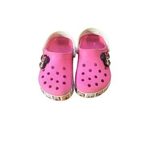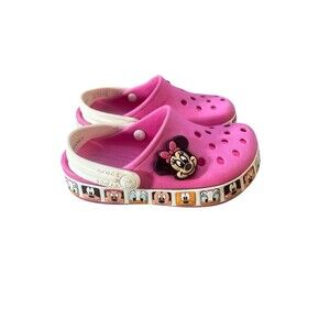 The Crocs Toddler Girls Fun Lab Disney Minnie Mouse Band Clogs in size C9 are colorful and comfortable clogs featuring the beloved Minnie Mouse character from Disney. The pink color and Minnie Mouse theme make them a fun and stylish choice for young girls who love Disney. These clogs are perfect for adding a touch of whimsy to any outfit while keeping little feet happy and secure.