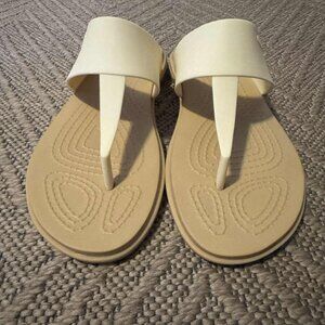 Crocs Tulum Sandals Women's Size 5 Beige/Taupe Rubber Flip Slides Thong Slip On in excellent condition....little to no wear