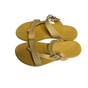 Crocs Tulum Toe Post Sandals Sz 7 Beige Buckle Iconic Comfort Thong Slides Women
