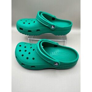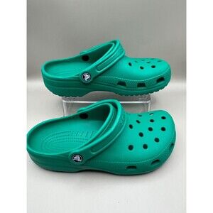 These preowned Crocs Crocband clogs in green combine sporty retro style with Crocs signature lightweight comfort. Featuring the iconic Crocband stripe, ventilated design, and Croslite foam cushioning, theyre perfect for casual wear, gardening, or all-day comfort.