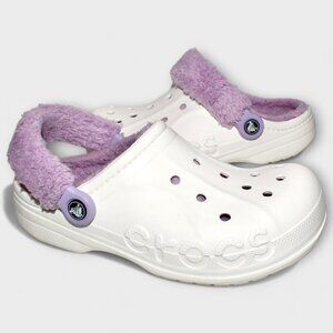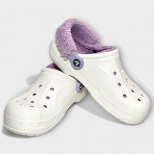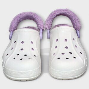 Crocs Unisex Baya lined fuzz strap clog white/lavender US Women's 8/Men's 6