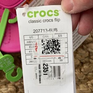 Crocs Unisex Classic Flip Flop Pink M8 W10 NWT