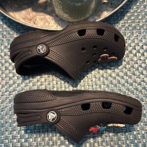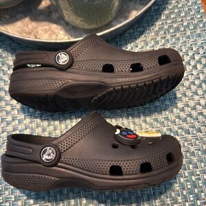 Great condition Kids Classic Crocs! Unisex style - size C12. Black and includes 4 free jibbitz! From non-smoking home.
