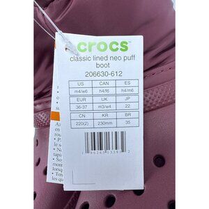 Crocs Unisex Classic Lined Neo Puff Boot (Garnet) US Size M 4 W 6 Perfect V-Day!