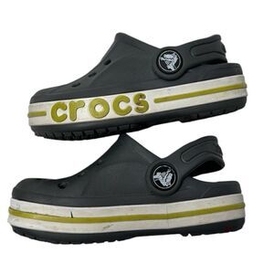 Crocs Unisex Toddler Bayaband Clog Slate Green/Lime Punch. Size 6 Toddler. A few marks on side of shoe. In great used condition.