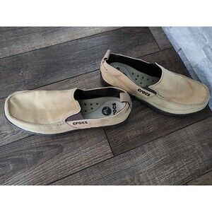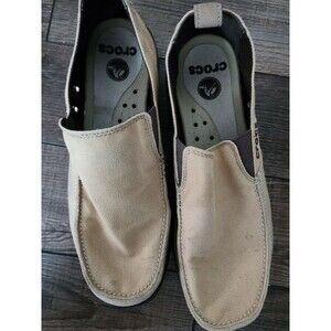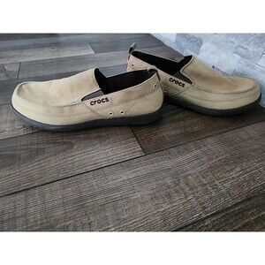 Crocs Walu Shoes Mens 12 Tan Canvas Slip On Loafer Comfort Casual Preppy