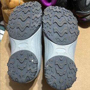 These are Crocs water shoes. They weren’t made for long. I used to wear them jet skiing, but I’m disabled now and can’t go anymore. They are grey with pink laces. They are used but still in good condition. Women size 9 or Men size 7.
