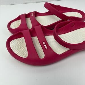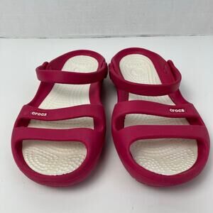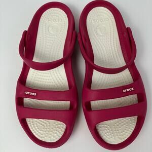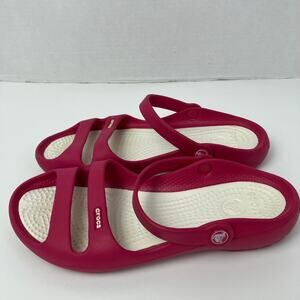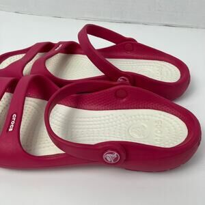 Crocs Wmns Sz 7 Cleo II Pink White Rubber Sandals Double Strap Slingback or Clog