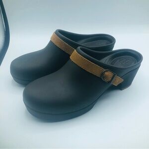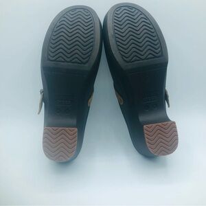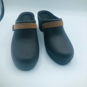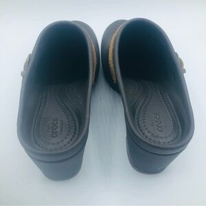 Crocs Women Brown Leather Strap Sarah Mule Clogs Dual Comfort Shoes Size W8 shoes are in excellent preowned condition