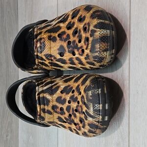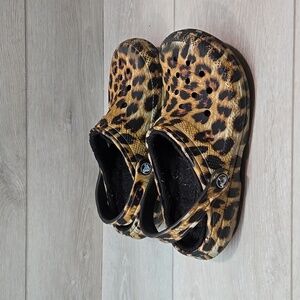 Crocs Women Classic Leopard Animal Print Insulated lined Clog Mule shoes