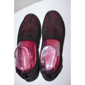 Crocs Women Duet Busy Day Xpress Mesh Skimmer Shoes Black and Pink Sz 8