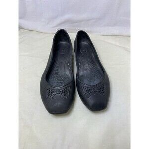 Crocs Women Shoe Lenora Size 7M Black Square Toe Bow Ballet Flat