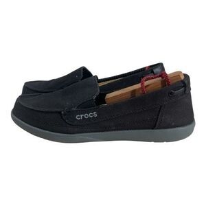 Crocs Women Walu Black Slip On Canvas Comfort Loafers Size 8 Boat Shoes 14391