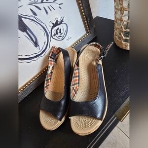 Crocs Women's A Leigh Cork Wedge Sandals Slingback Peep-Toe Black Sz 8